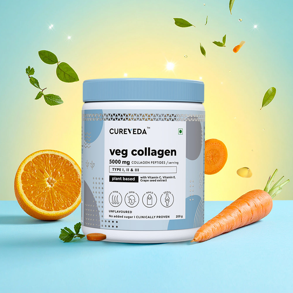 For those who are vegetarian, Cureveda Veg Collagen is an excellent option. Cureveda Veg Collagen promotes joint and bone wellness, alleviating aches and discomfort associated with decreased collagen levels. Our comprehensive blend includes collagen types I, II, and III for holistic support. It provides 46 % of reduction in joint pain.