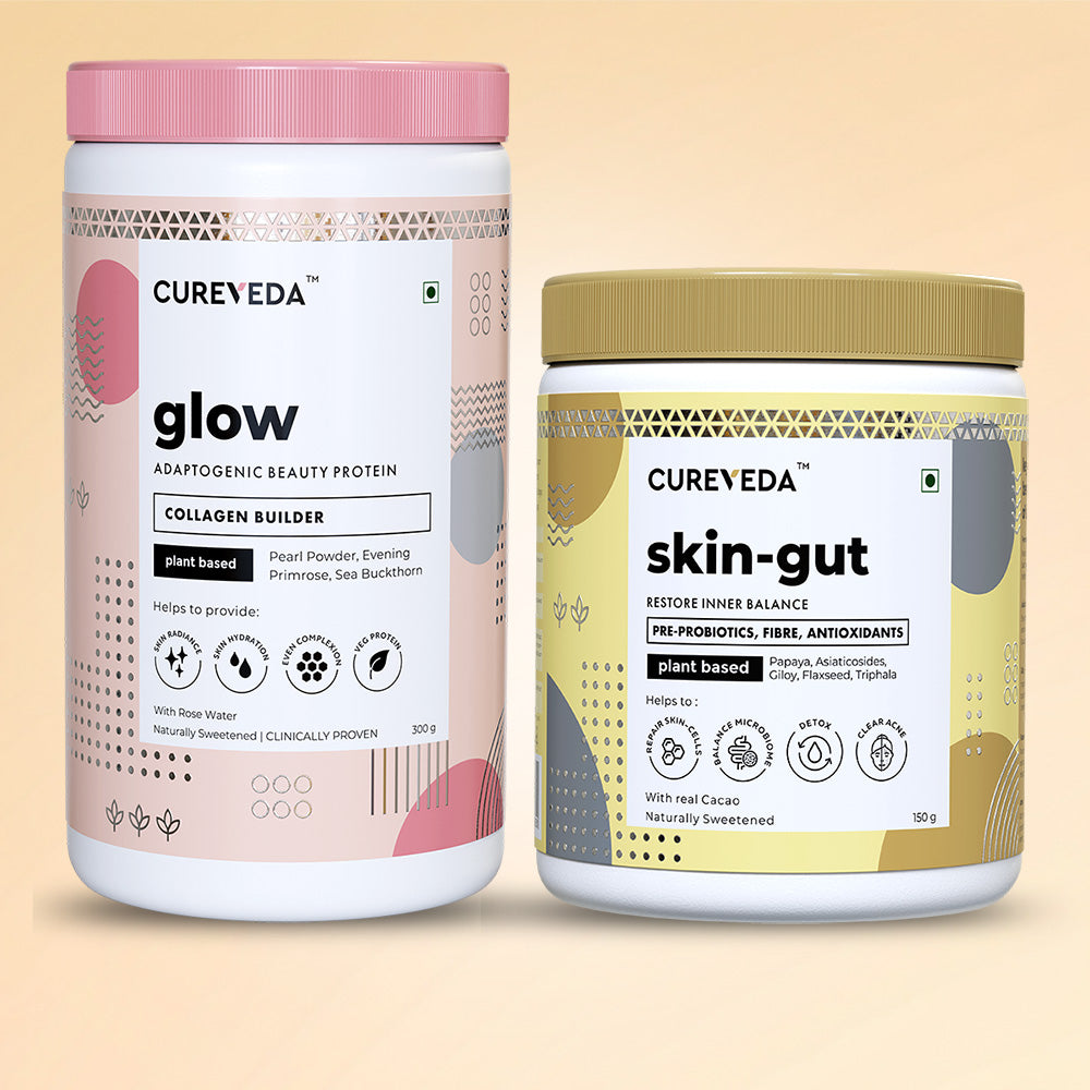 Many of the best supplements for glowing skin now include probiotics, blending gut and skin support seamlessly. Cureveda Skin Gut with Pre-Probiotics is a plant-based anti-ageing and skin-nutrition blend designed to enhance skin elasticity, hydration, and youthful radiance with herbs, antioxidants, and gut-supporting botanicals.