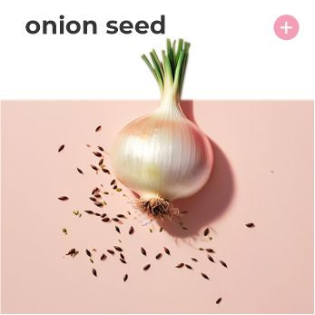 Onion Seeds' 4% quercetin blocks DHT, preventing hair loss, while Biotin (B7) stimulates improved hair texture and strength.