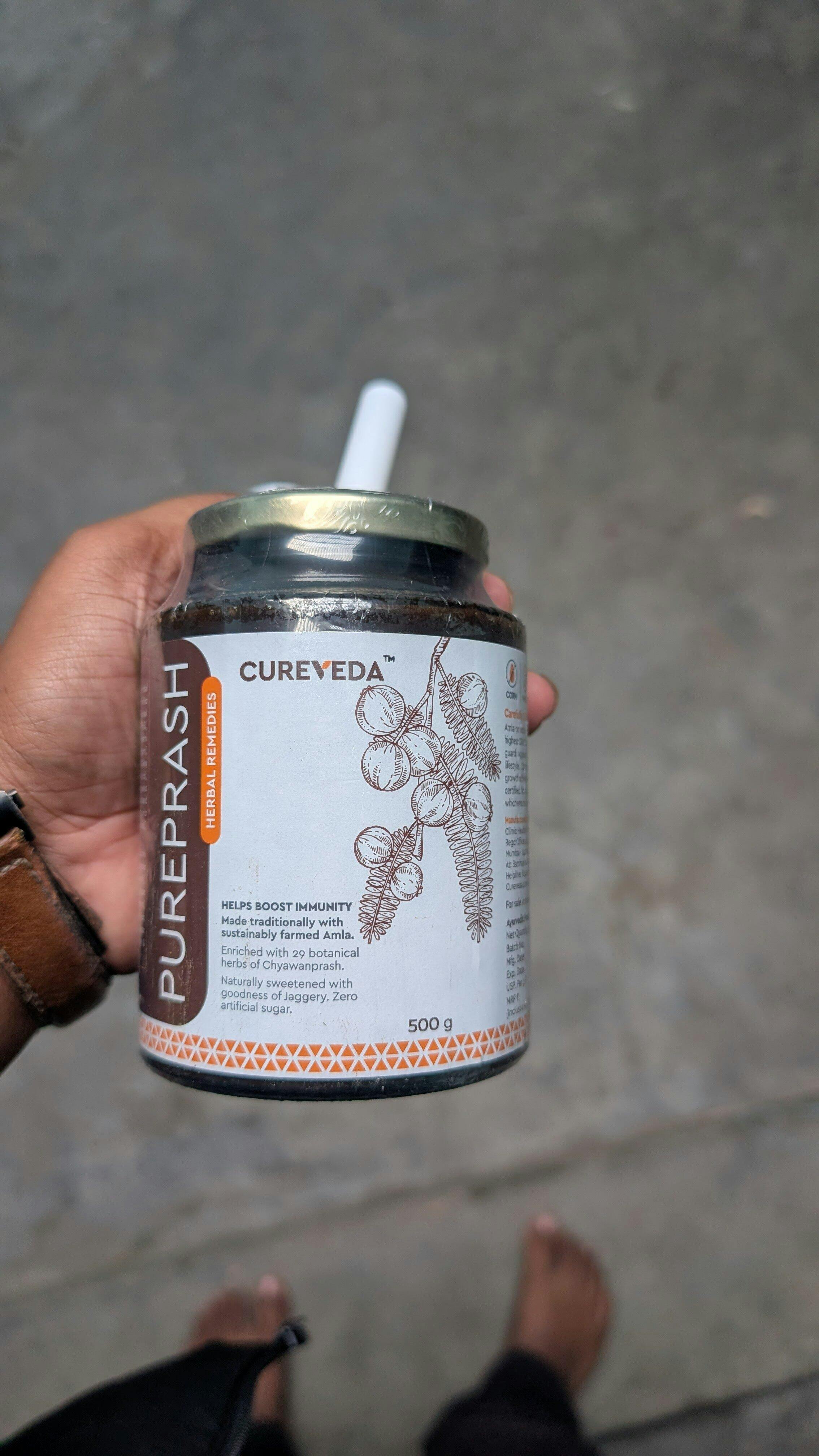 Cureveda Pureprash is a purely herbal chyawanprash, also known as a Vitamin C chyawanprash because it is made of traditionally prepared Avleh or Amla grown using sustainable farming practices. Amla or Indian Gooseberry has one of the highest ORAC values. Cureveda Pureprash packs in an extra dose of amla so you get maximum benefits of Amla & Vitamin C and less of the sugar.