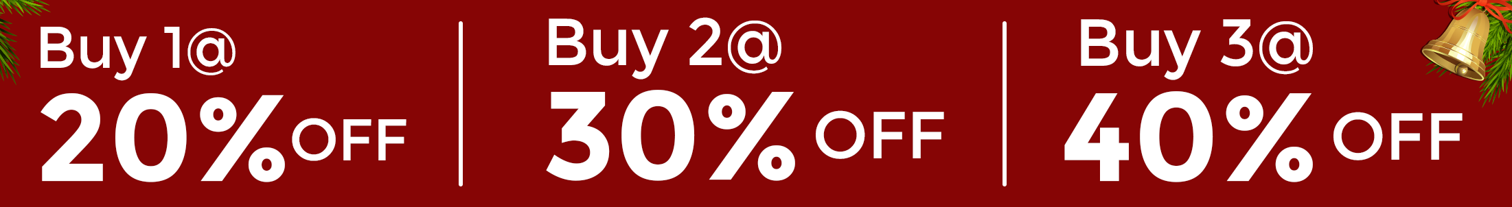 CHRISTMAS SALE: Buy 1 @ 20% off, Buy 2 @ 30% off & Buy 3 @ 40% off