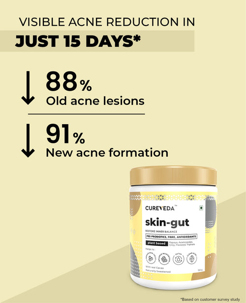 A gut-skin axis supplement like Cureveda Skin-Gut supports the deep connection between digestion and skin — poor gut health can trigger breakouts, dullness, and uneven texture.